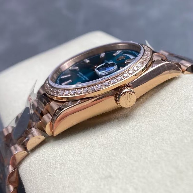 In terms of appearance design and material selection, the high-quality imitation Rolex Day-Date 36 m128395tbr-0032 wristwatch strictly adheres to the 1:1 standard of the genuine product. The 36mm gold watch diameter has been precisely measured to fit wristbands of different genders and thicknesses, providing a comfortable and snug fit.
