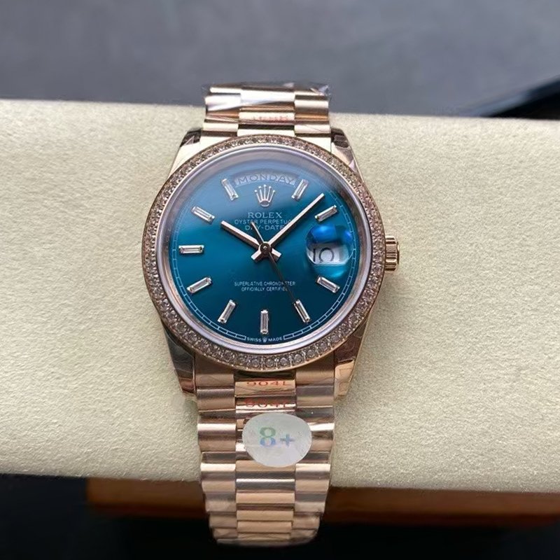 The high-quality replica Rolex Day-Date 36 m128395tbr-0032 wristwatch is a 1:1 genuine replica in all aspects, from style design, appearance material to core movement, without any detail deviation.